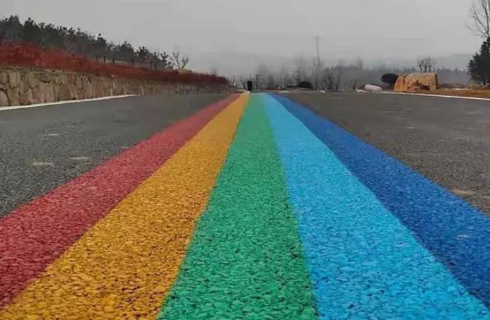 我們常說的彩色瀝青,又叫彩色膠結料,是筑路材料的一種,目前有兩種: 1、以無色膠結料(非純色,褐色到深褐色,顏色越淺質量越好)加色粉,無色膠